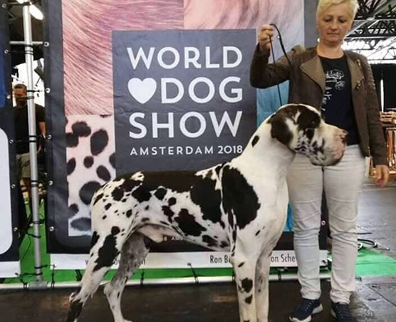 大丹犬(丹麥——布達佩斯)布達佩斯的******犬展,沒有留在現(xiàn)場觀看,但是后來跟犬主聊天,他的寶寶全場******,為你鼓掌。